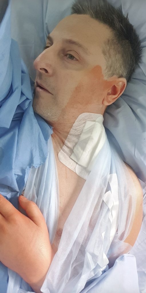 Wstrząśnienie rdzenia kręgowego i ciężkie uszkodzenie nerwów. Od tego momentu lewa ręka przestała działać.
